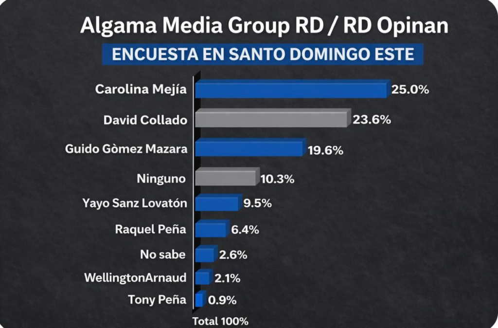 Carolina Mejía encabeza la preferencia con 25.0 %, demostrando nuevamente su fortaleza a lo interno del partido oficialista, con miras a convertirse en la candidata presidencial para 2028.