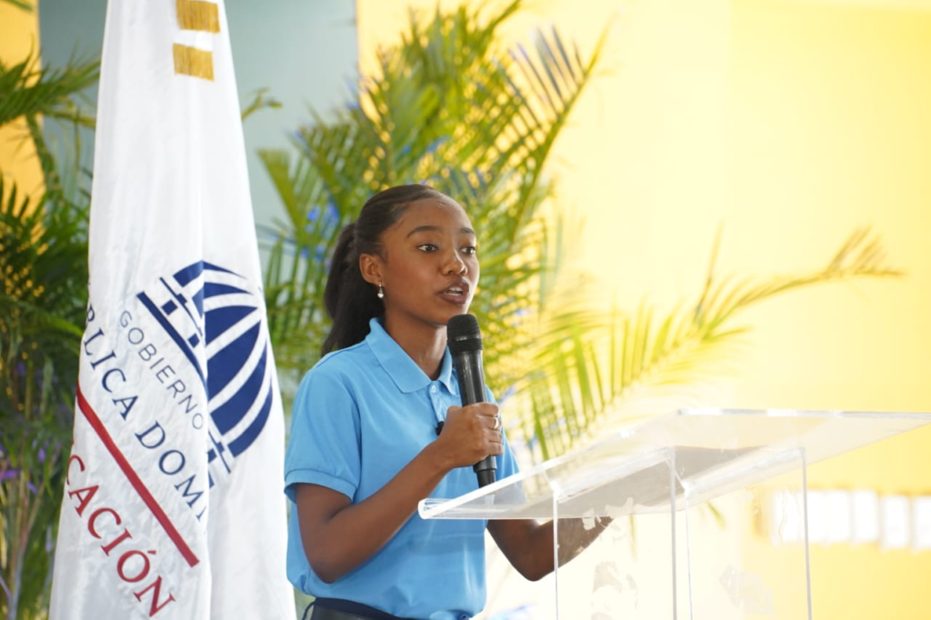 En representación de todos los estudiantes habló Yulianny Lisbeth Zayas Familia, de 6to. de Secundaria, quien agradeció al presidente Abinader y al ministro De Camps, por creer en la juventud dominicana y por comprender que cuando se invierte en educación, se invierte en el porvenir de la nación.