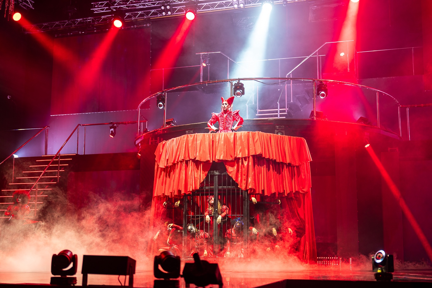 El opening involucra 40 bailarines, una jaula de hierro fundido (11 pies de ancho x 8 pies de alto), y un espectáculo de luces.