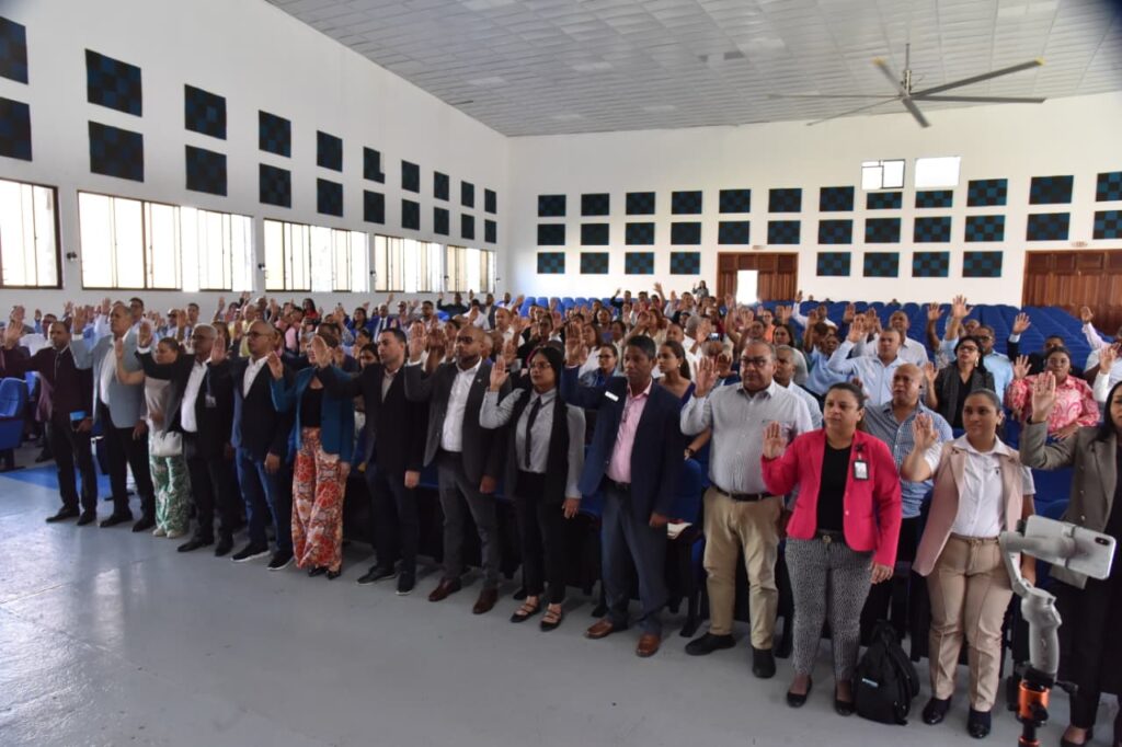 Santo Domingo, R.D., 4 de octubre de 2025 – La Comisión Nacional Rectora de Evaluación del Desempeño Docente 2025 del Ministerio de Educación de República Dominicana (MINERD) juramentó de manera simultánea las comisiones distritales en las 18 regionales del país, con el fin de apoyar la planificación, organización y ejecución del proceso en los centros educativos locales. Estas delegaciones también resolverán incidencias y reportarán avances en sus demarcaciones.